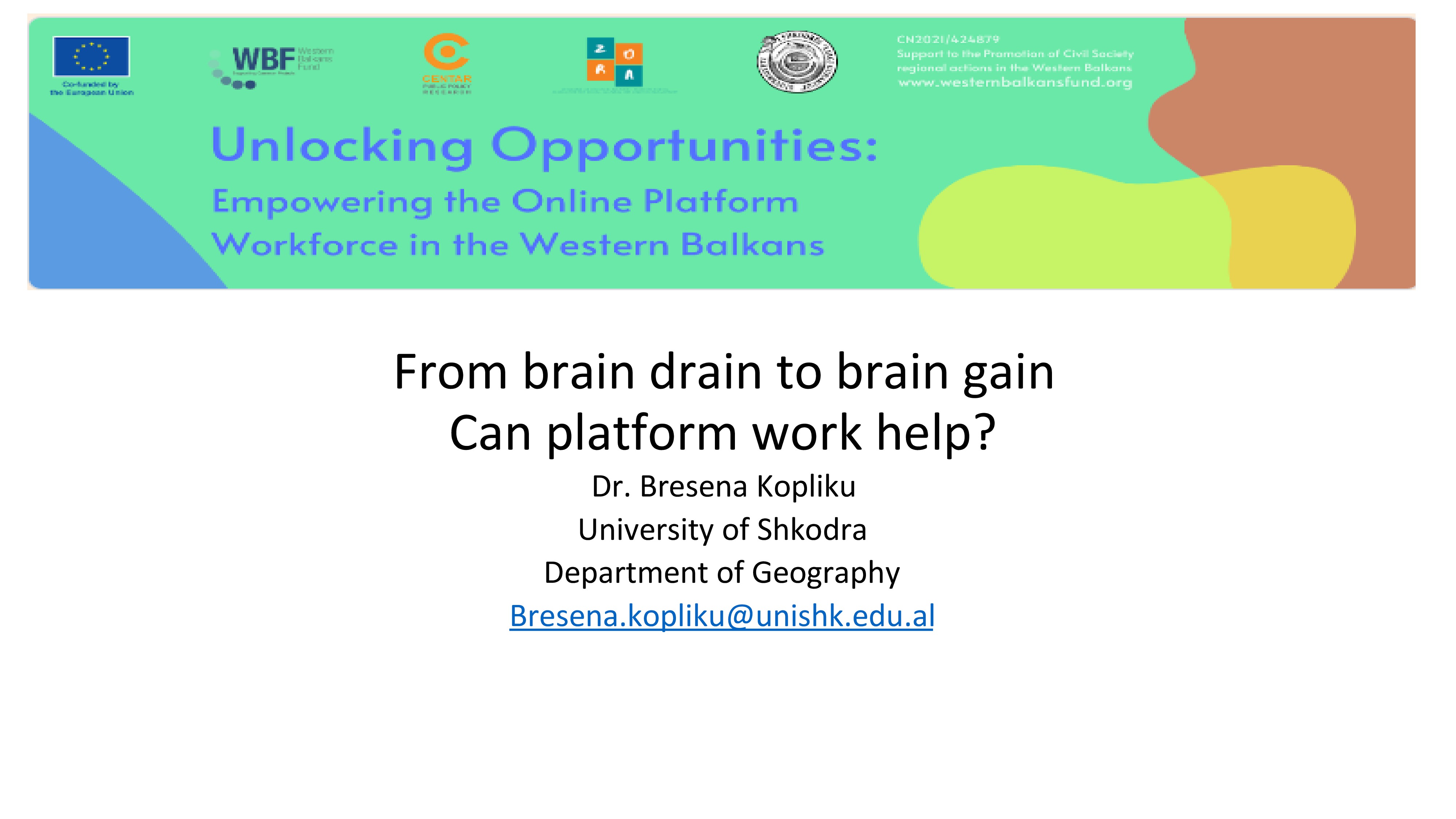 Projekat Kolaboratorija za saradnju na Otvorenom Balkanu u oblasti onlajn platformske ekonomije: Srbija, Albanija i Bosna i Hercegovina koji sprovode Centar za istraživanje javnih politika (CENTAR) kao vodeći partner i Univerzitet Skadra "Ljuiđ Gurakukui“ i Udruženje za socijalni, kulturni i kreativni razvoj Zora iz Zenice ima za cilj da unapredi saradnju i naučnu razmenu između obrazovnih i istraživačkih institucija, civilnog društva i javnog sektora u Srbiji, Albaniji i Bosni i Hercegovini u oblasti onlajn platformskog rada koji sve više privlači mladu radnu snagu sa Zapadnog Balkana, i može potencijalno doprineti sprečavanju odliva mozgova iz regiona. Cilj projekta je da promoviše rodnu ravnopravnost i jednake mogućnosti u oblasti platformske ekonomije, tako što će posebno istražiti ranjivost ženske radne snage koje proističe iz nejednakosti i diskriminacije u tradicionalnoj ekonomiji. Takođe, kroz projekat nameravamo da unapredimo dobrosusedske odnose i proces evrointegracija u oblasti nauke, obrazovanja i politika zapošljavanja u tri zemlje. Uoči predstojećeg usvajanja Evropske direktive o platformskoj ekonomiji, projekat ima za cilj jačanje naučnih resursa i znanja za informisano kreiranje javnih politika u tri zemlje i inspiriše debate o usaglašavanju domicilnih zakonodavnih okvira u skladu sa rešenjima iz Direktive.