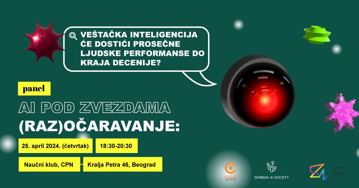 Pozivamo sve studente i ljubitelje tehnologije na nezaboravnu radionicu o Turingovom testu i veštačkoj inteligenciji! Pridružite se nam na ovom uzbudljivom događaju koji organizuje Srpsko društvo veštačke inteligencije u partnerstvu sa Centrom za istraživanje javnih politika i Centrom za promociju nauke. Link za prijavu je ovde.